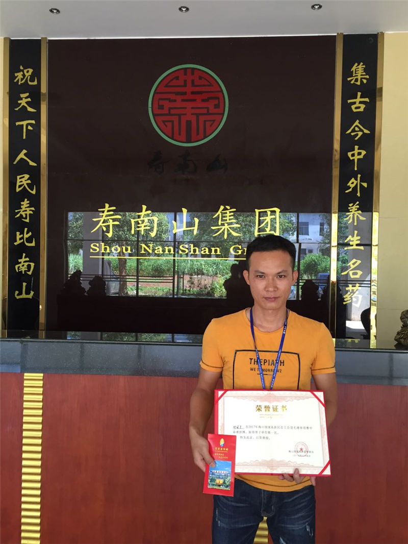 (下圖為榮獲男單冠軍的鄧國展示獎狀及公司發(fā)放的獎金)